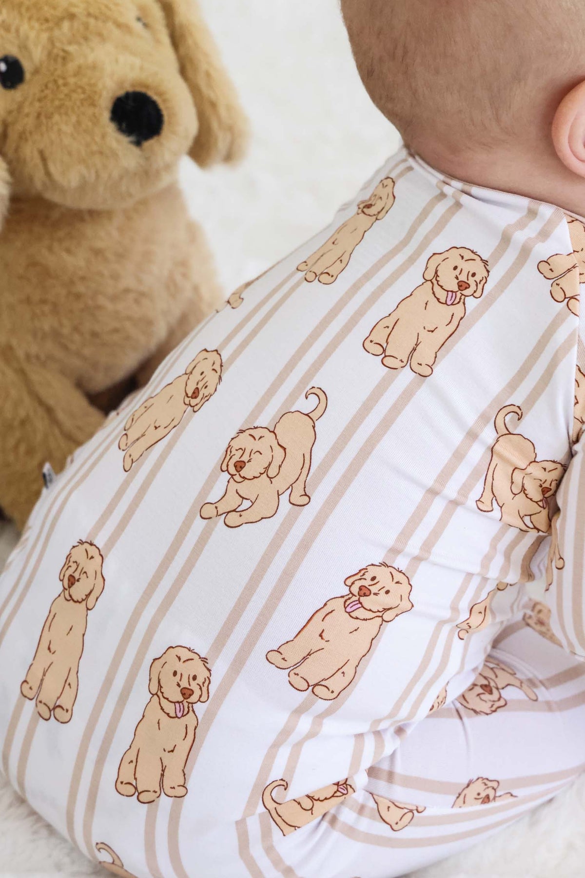 caden lane two piece pajama set with golden retriever print for babies