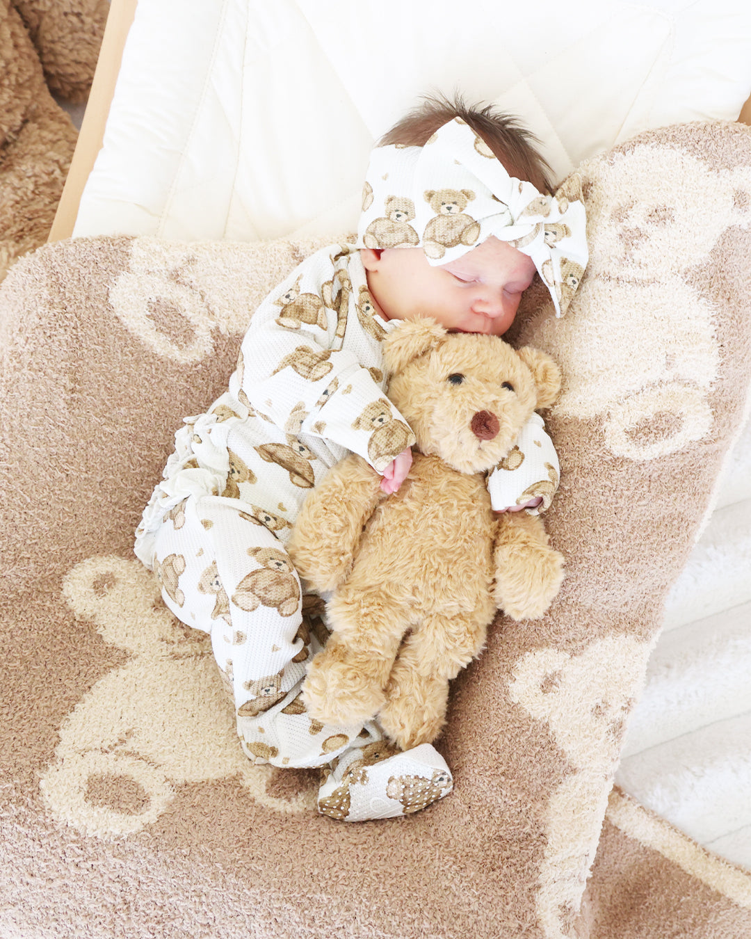 pine tree bamboo waffle zipper footie for babies with foot grips