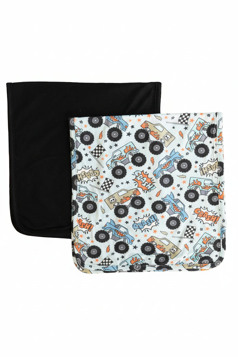 This oversized burp cloth set ensures that both mom and baby stay clean during even the messiest moments! Coming in a bold monster truck print with a coordinating black solid, this burp cloth set will add a touch of cuteness and buttery soft comfort when it comes to feeding time. These super absorbent bamboo burp cloths will make cleaning every drool and spit up easier than ever before - making them a must-have for every new parent!
