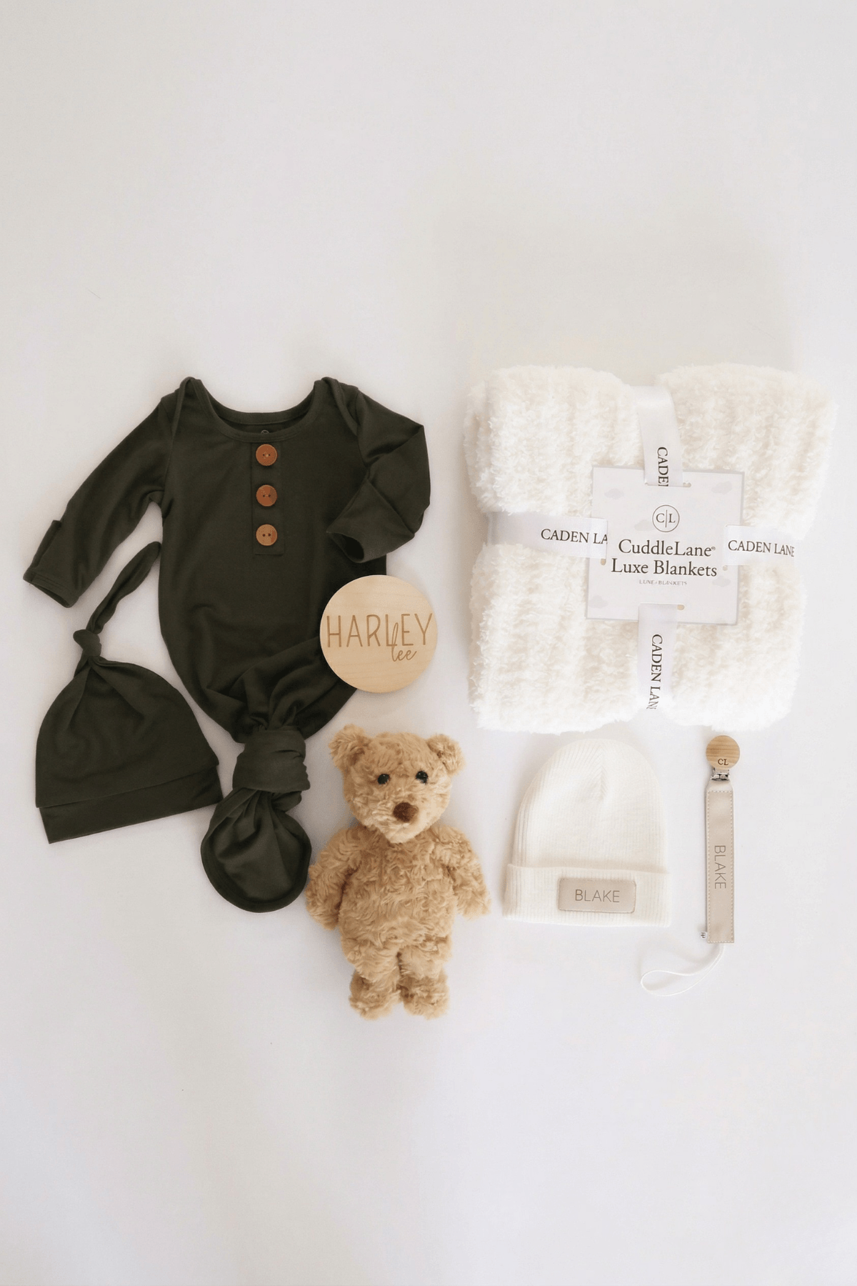 A dreamy, gender-neutral baby shower gift that’s packed with love! These high-end baby bundles are filled with cozy, versatile essentials for any little bundle of joy. Each box is carefully packaged by our Texas team and filled with luxury bamboo babywear, plush blankets, and personalized keepsakes for the most memorable first moments. From buttery-soft bamboo outfits and swaddles to a luxe baby blanket and hooded towel, these sets bring comfort and convenience to new parents. With a personalized touches complete with baby's name, this gift is as unique as the little one it’s celebrating. Whether it's a surprise gender reveal or just a love for neutrals, this set is the perfect way to say, "Welcome, baby!"