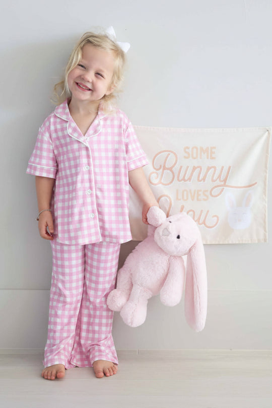 The sweetest matching moments start here! Our girls’ lounge set features a button-up, collared top and flared pants in a variety of prints, so there is something for every girl's style. It's the perfect mix of cozy and cute, and made to match with our women's lounge sets for picture-perfect moments. Made from soft and breathable bamboo viscose, this two-piece set is gentle on sensitive skin and comfy enough for slow mornings and couch snuggles. The relaxed fit and stretchy feel make it easy to wear all day. Pretty, practical, and perfect for girls who love to match with mom while staying oh-so-comfy!