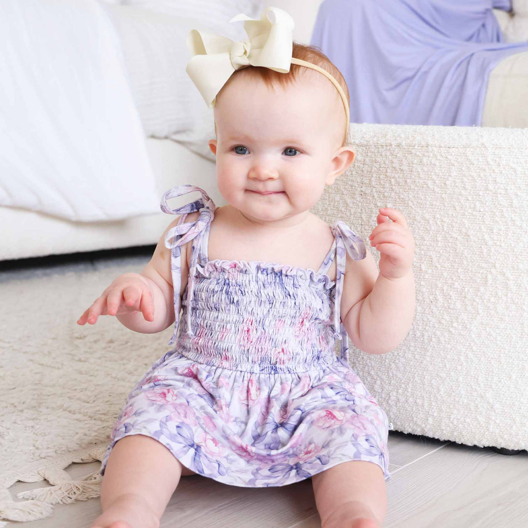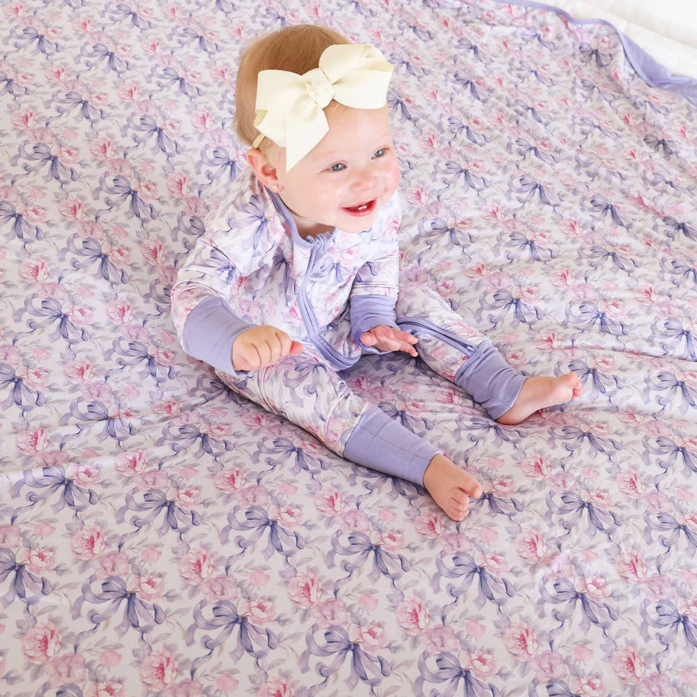 Step into a world of softness and sweetness with the Leighton’s Lavender Collection! Inspired by vintage charm and spring garden blooms, this delicate print features lavender roses, twirling greenery, and dainty periwinkle bows on a soft lilac background. It is a floral daydream made for snuggles, style, and all the little moments in between. From twirl bodysuits and zip footies to personalized blankets, crib sheets, and cozy nursery must-haves, every piece is designed for comfort and made with love. The breathable bamboo fabric keeps your little one comfy from morning to bedtime, while the matching sets bring beauty and ease to every stage of babyhood and toddlerhood. Perfect for gifting, nursery styling, or your next matching family moment, the Leighton’s Lavender Collection is a timeless favorite filled with sweetness and softness from head to toe.