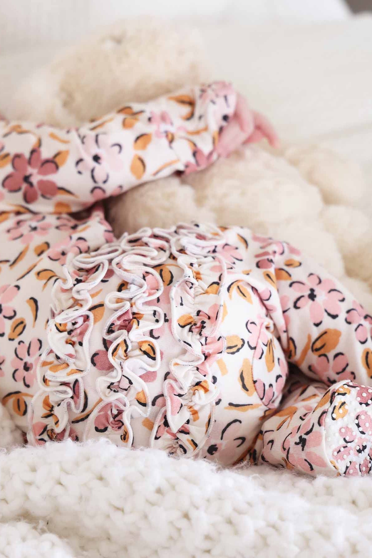 This extra cozy footie featuring an adorable mauve and blush floral design will have every parent falling even deeper in love with their little girl! The full-length zipper makes it easy to dress your baby quickly while ensuring the footie stays securely in place, with sweet ruffles on the bottom to add an extra girly touch to this classic design that your baby will love to wear. Made from high-quality bamboo viscose, this footie is soft and gentle on your baby's delicate skin and will keep them comfy from tummy time to naptime!