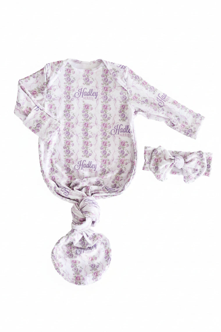 Rosie's Rose Garden Floral Personalized Newborn Baby Knot Gown