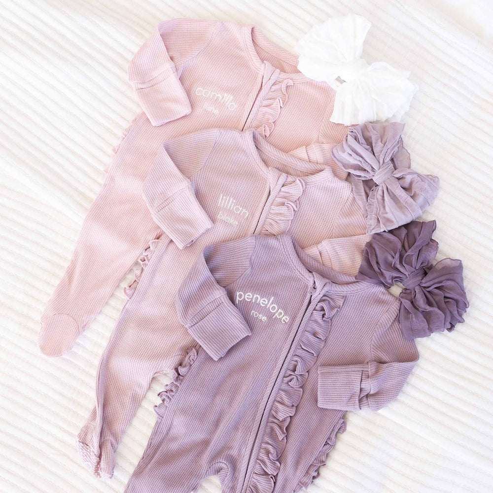 Discover the latest arrivals in baby girl fashion at Caden Lane. From adorable rompers and footie pajamas to sweet headwraps and swimwear, our collection features high-quality, comfortable pieces in charming prints and colors. Perfect for everyday wear or special occasions.