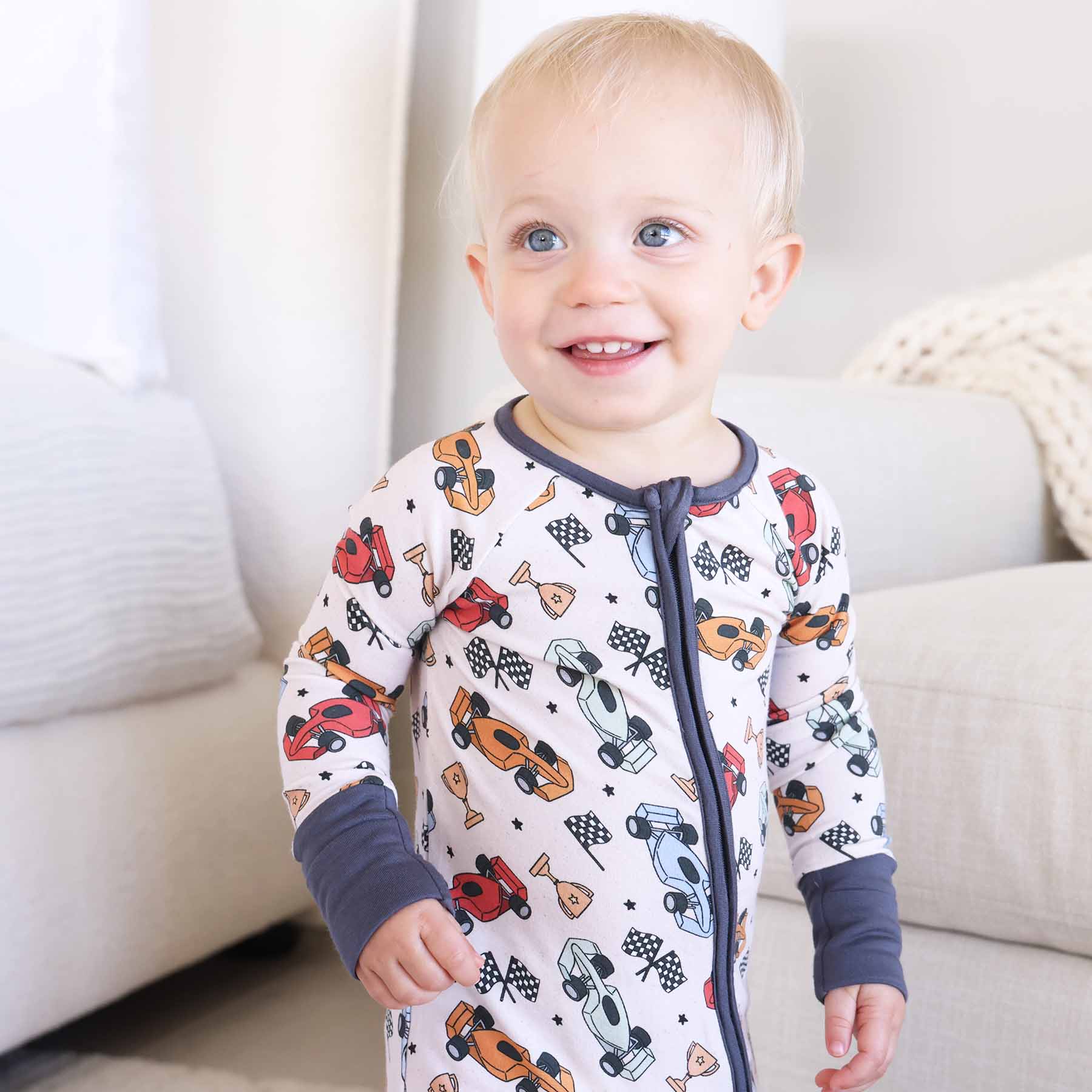 The softest pajamas for your little racer! This Pit Crew convertible zip romper is made from dreamy bamboo viscose fabric, keeping your little one snuggly and cool through every season. Featuring a full-length zipper and convertible flip mitts, this romper makes diaper changes a breeze, so your little one can get back to dreaming about their next day on the track!