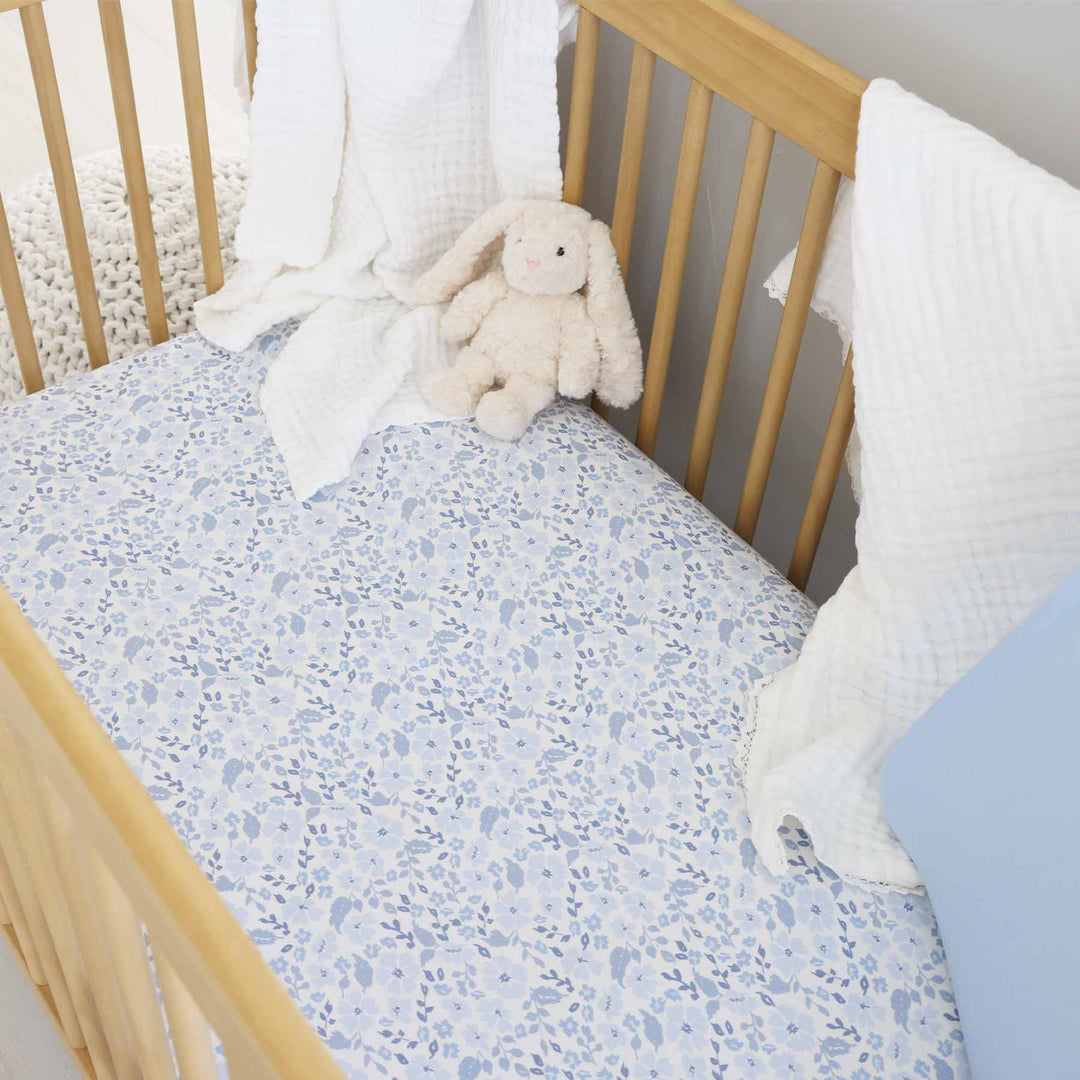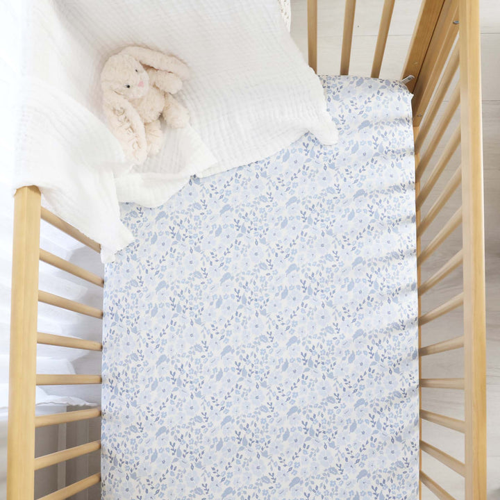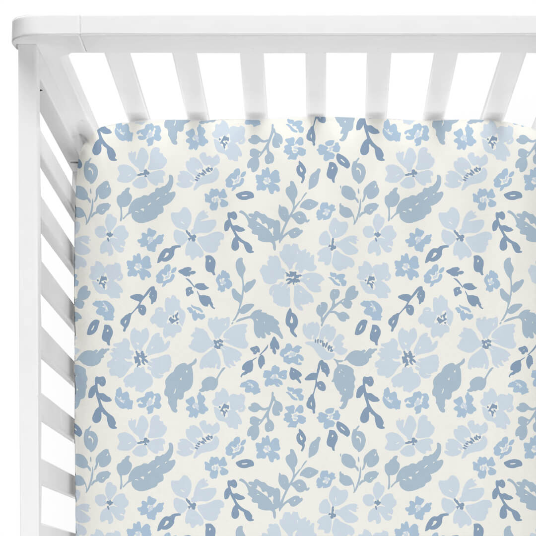 dusty blue floral crib sheet for nursery
