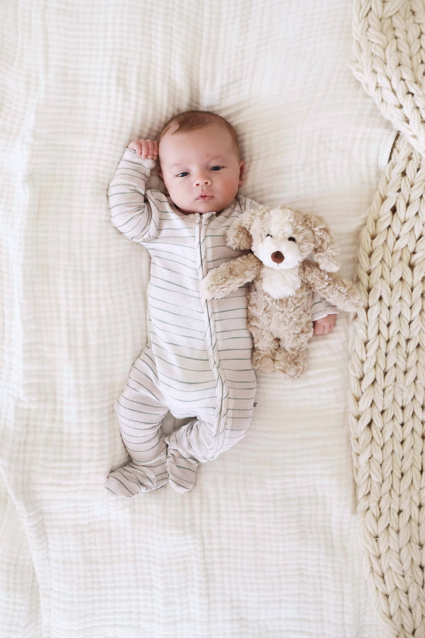 Evergreen Bamboo Waffle Zipper Footie
