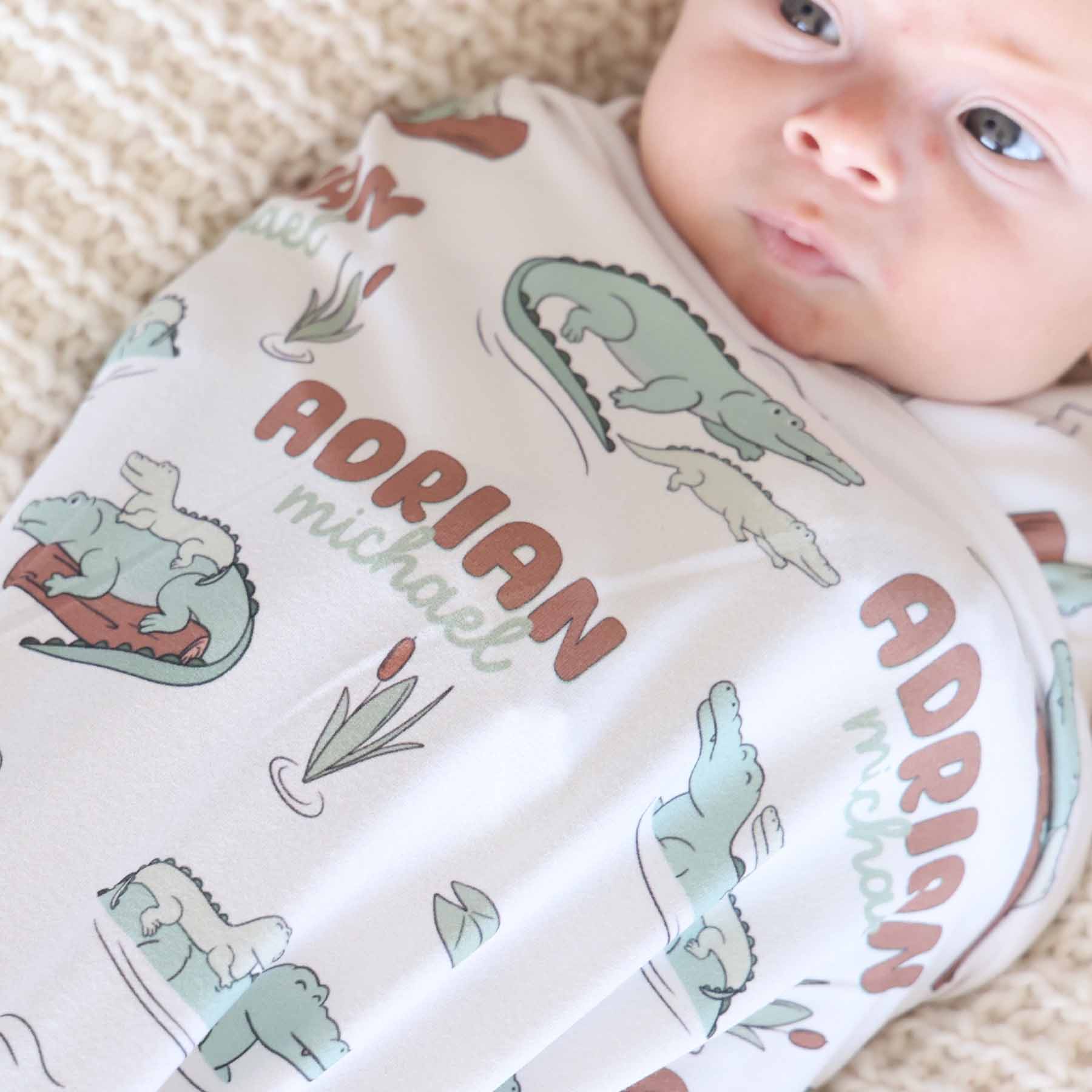 alligator personalized swaddle blanket for boys