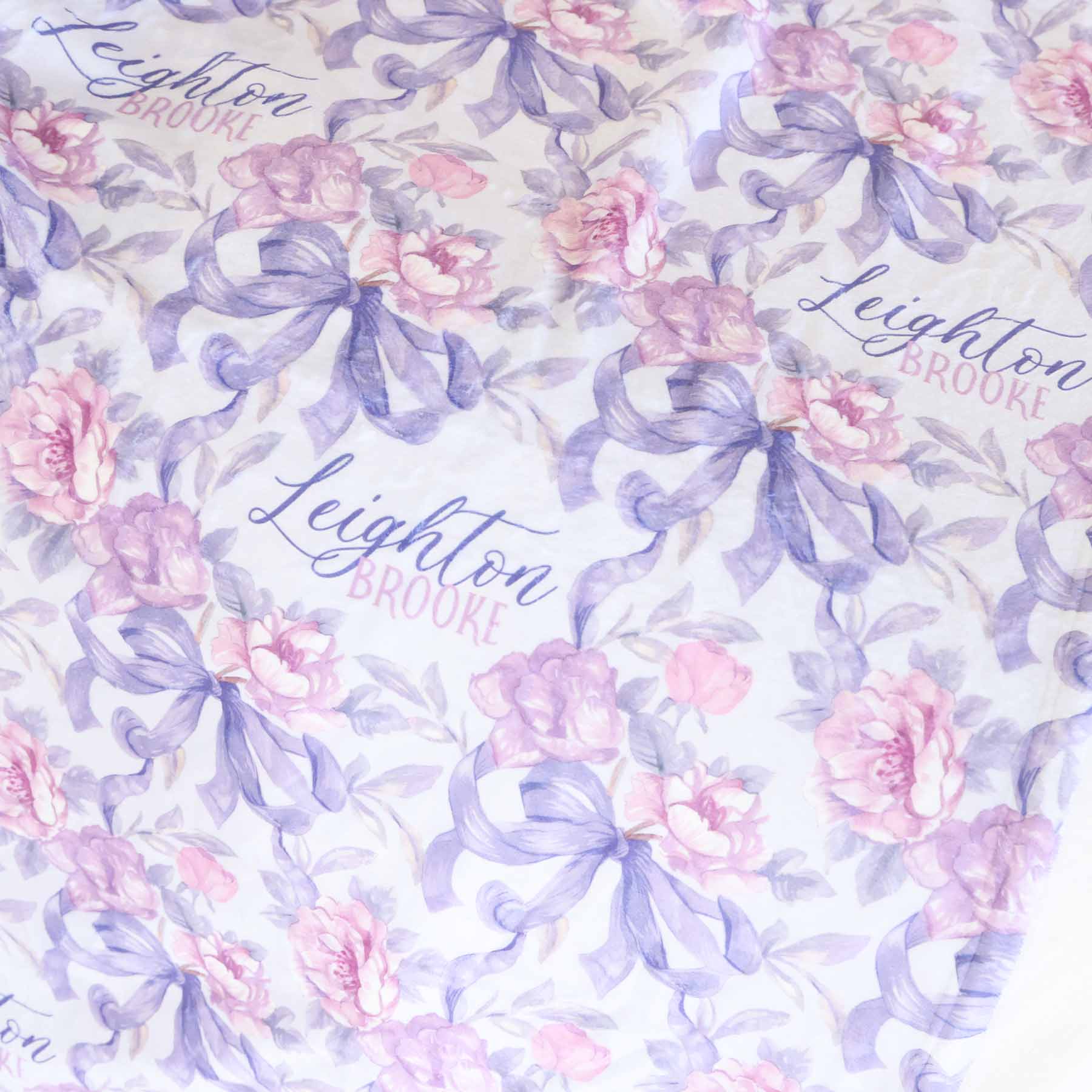Snuggle time just got a whole lot sweeter with our Leighton’s Lavender Personalized Kids Blanket! Bursting with watercolor roses in shades of blush and lavender, delicate vines and dainty periwinkle bows, this dreamy floral print brings a touch of magic to every cuddle, nap, and movie night. Made from our signature bamboo blend with a velvety-soft feel, it’s lightweight yet cozy, breathable yet warm and the perfect all-season companion for growing littles. Personalize it with her name to make bedtime feel extra special. Whether it’s draped across her bed or tagging along to sleepovers, this blanket wraps her in softness and love with every snuggle.