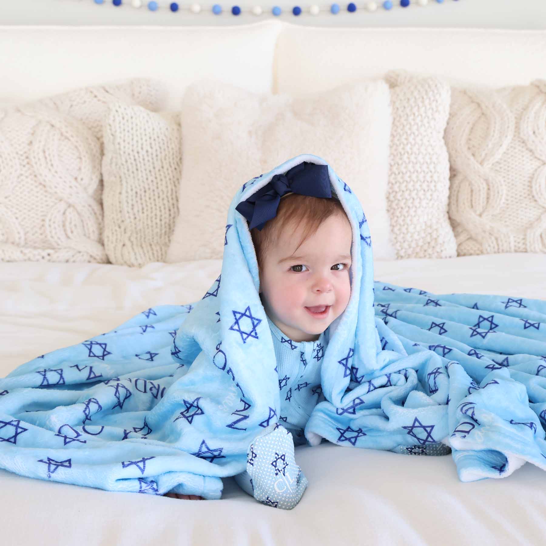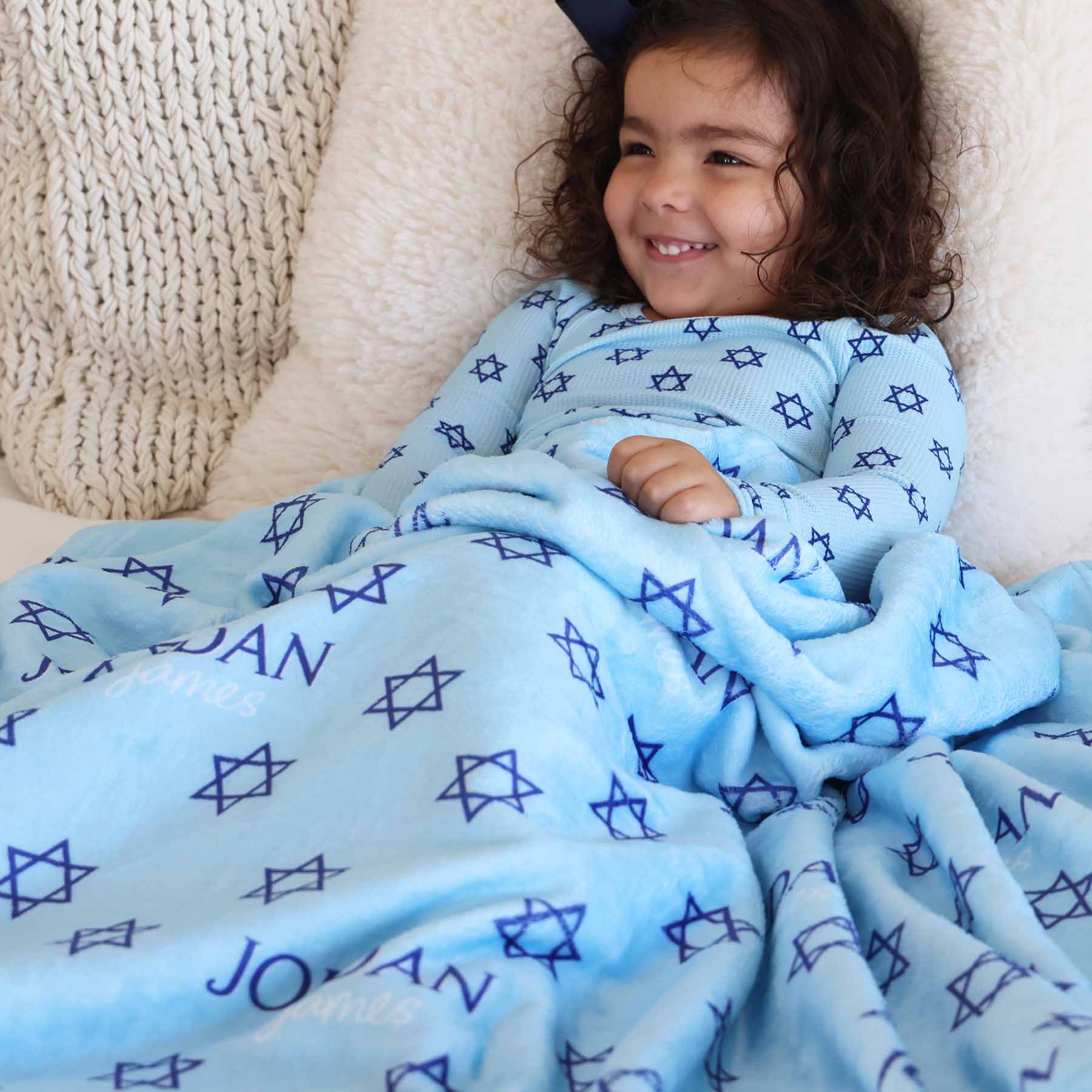 Make Hanukkah extra special with our Shalom Snuggles Personalized Kids Blanket! Featuring a cheerful blue background sprinkled with navy Stars of David, this blanket can be customized with your child’s name for a unique touch that’s just for them. Crafted from buttery fabric, it’s soft, breathable, and cozy with a feel little ones will love. The generous size makes it perfect for bedtime, lounging on the couch, or curling up after a night of dreidel games and latkes. Practical, personal, and filled with holiday cheer, this blanket is one your child will reach for night after night during the Festival of Lights and beyond.