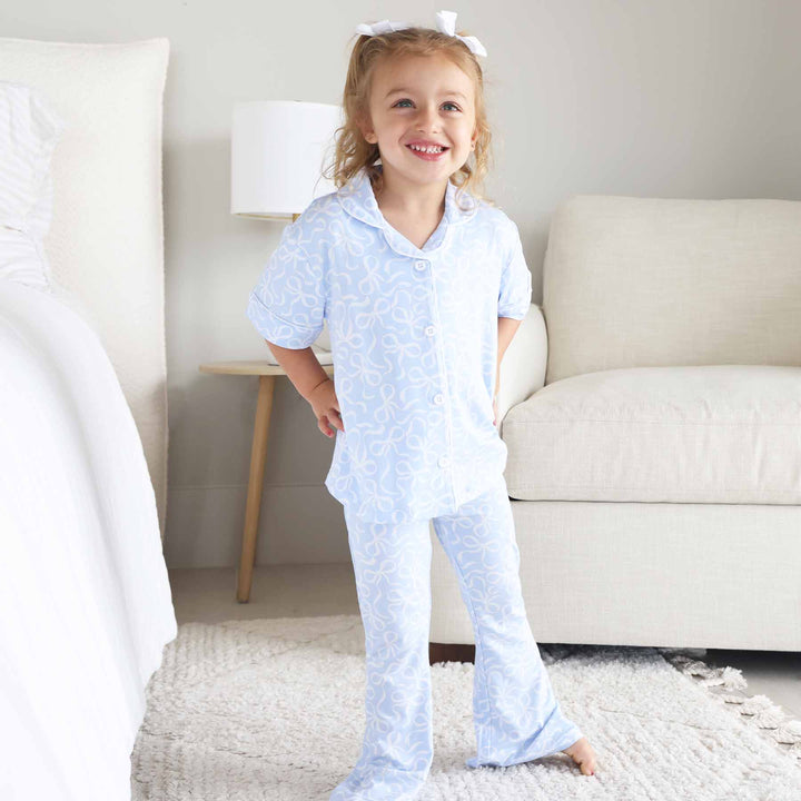 blue-tiful bows girls two piece lounge set