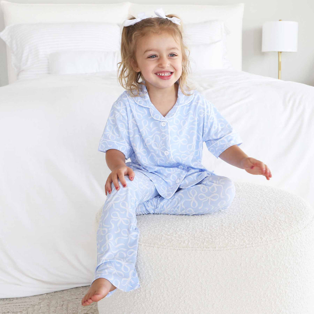 light blue and white bow two piece lounge set for kids
