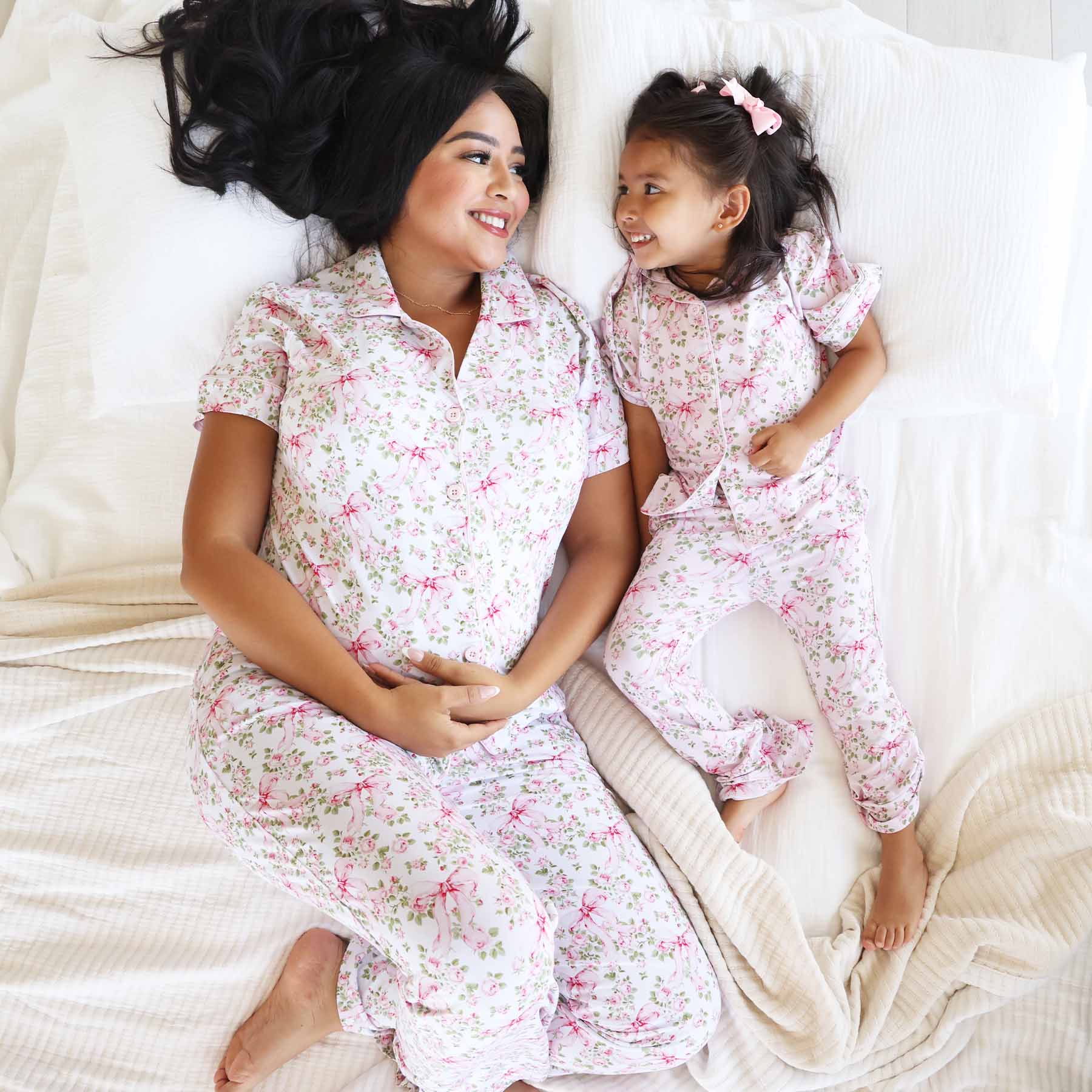 mommy and me matching pajamas bows in bloom for girls