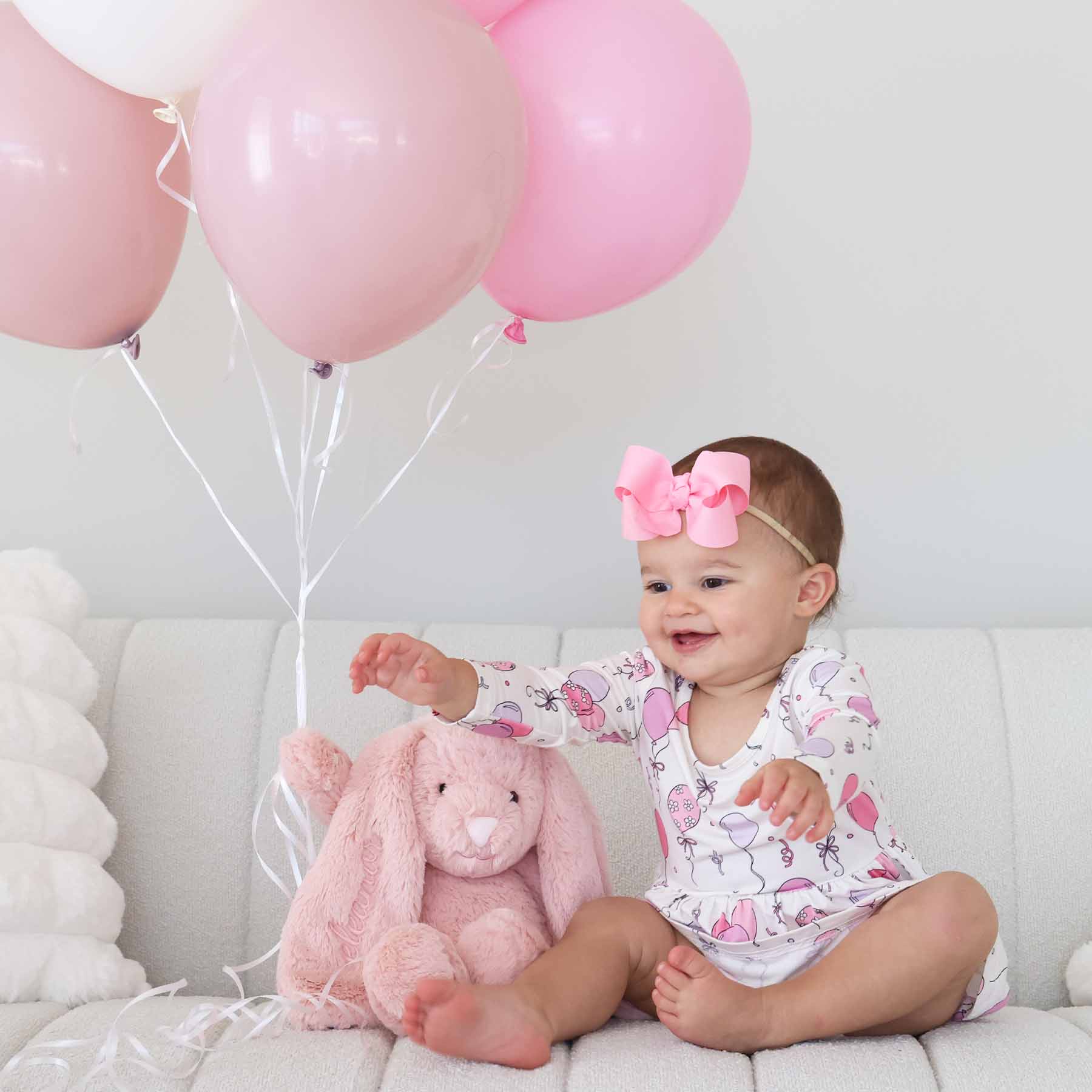 Dress her for the celebration with our Pink Party Time Long Sleeve Twirl Bodysuit! Decorated with festive pink balloons, bows, and streamers, this all-in-one outfit combines the comfort of a bodysuit with the sweetness of a skirt for the perfect birthday outfit. Made from soft, breathable bamboo fabric, this bodysuit will keep her comfy while the snap closures make changes quick and simple. The long sleeves add extra warmth for cooler party days, and the skirt adds a little extra something for photos, cake smashes, and every party activity. Fun, festive, and comfortable, this bodysuit will be a favorite for celebrating her big day!