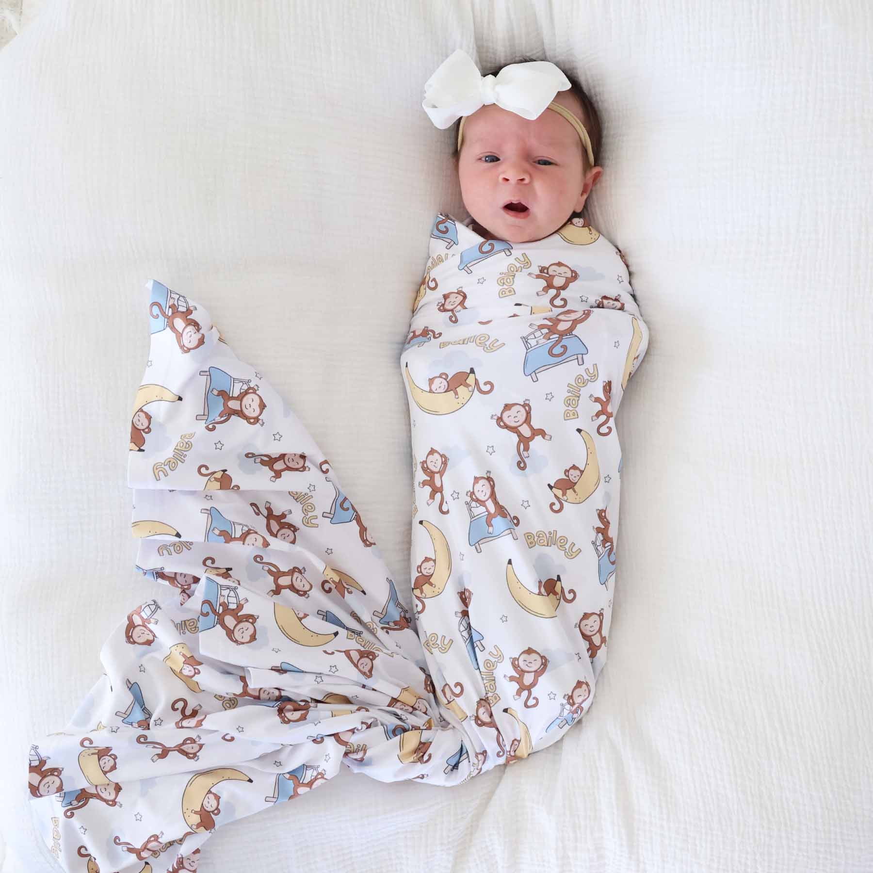 Monkey See, Monkey Snooze Personalized Swaddle Blanket