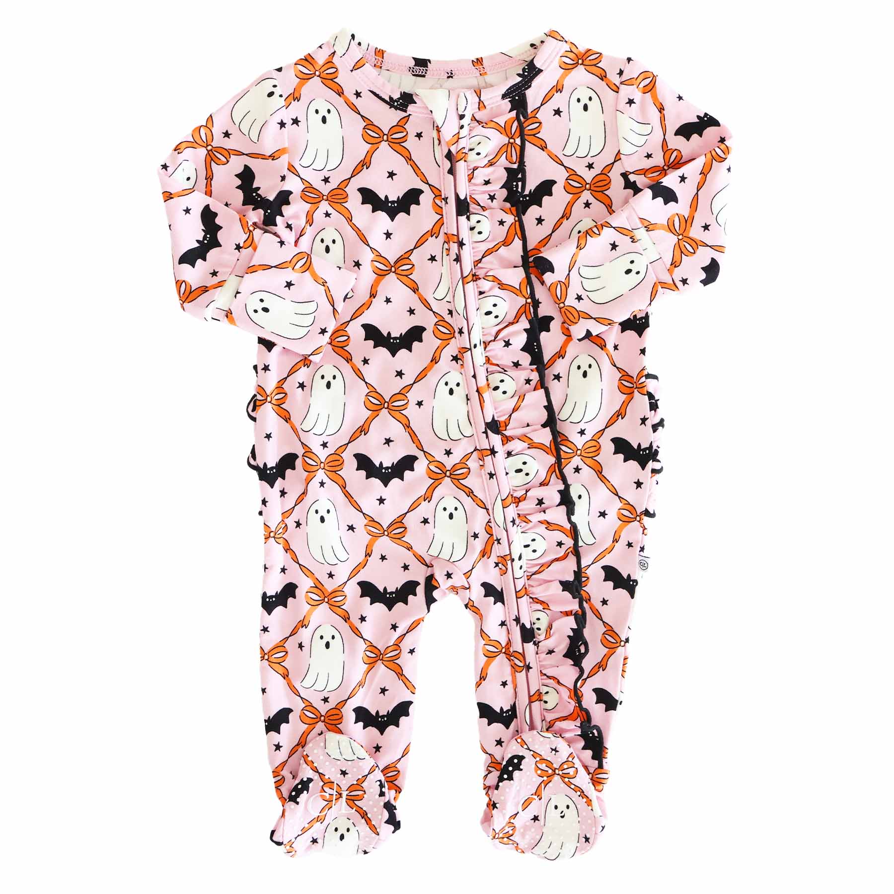 Pearl Pink Bamboo Waffle Ruffle Zipper Footie