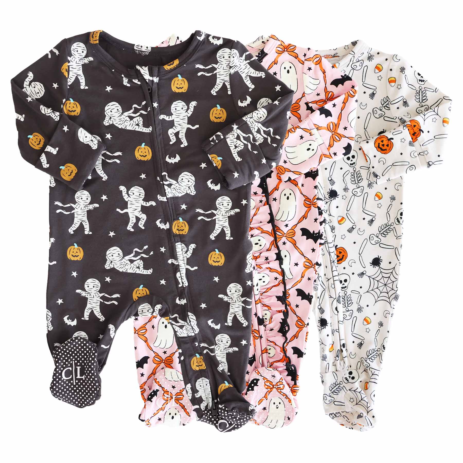 Embroidered Bamboo Waffle Zipper Ruffle Footie | Elderberry