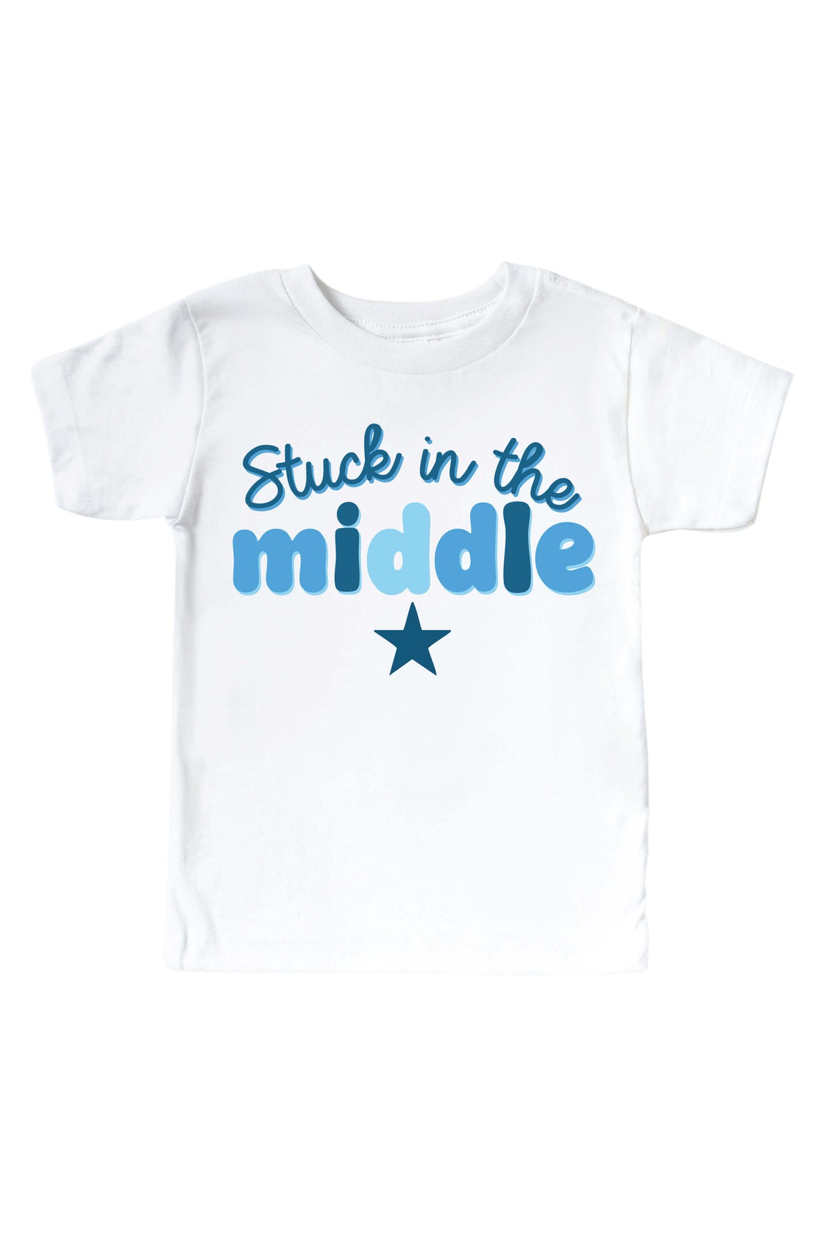 For the sibling holding it all together, the “Stuck in the Middle” Graphic T-Shirts are made for the middle child who proudly owns their spot. The girl version features soft pink lettering with a delicate bow detail, while the boy version showcases bold blue lettering with a coordinating star. Both are printed on crisp white tees for a clean, standout look. Made from soft, breathable cotton, these shirts are lightweight, comfortable, and perfect for everyday wear. Whether it’s sibling photos, family outings, or just embracing middle-child energy, this tee adds a little humor and personality to the mix.
