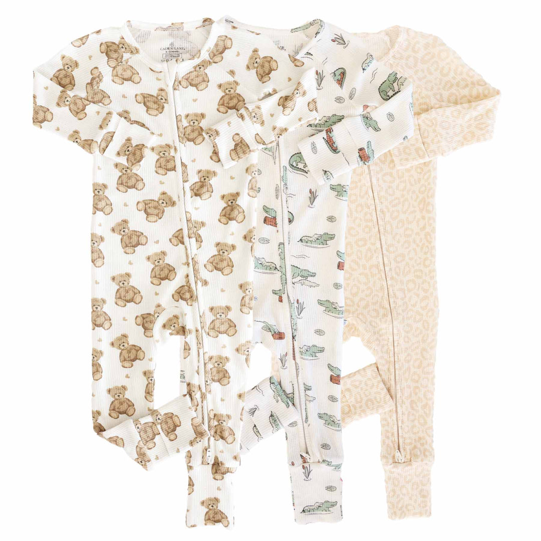 Designed to grow with your baby, our double zipper convertible rompers have flip footies and mitts to go from day to night!