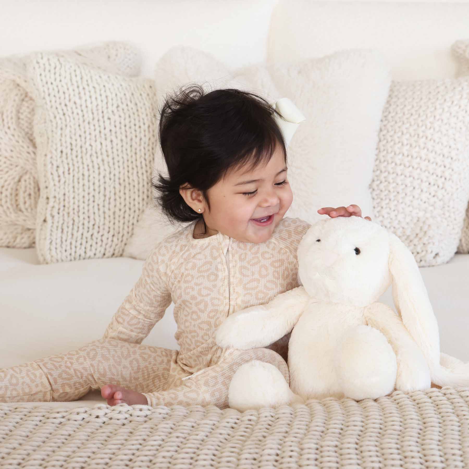 Bring a little wild style to your baby’s wardrobe with our Lovely Leopard Zip Romper! Featuring a soft neutral leopard print, this romper is as chic as it is snuggly. Crafted from buttery bamboo viscose, it’s breathable, stretchy, and gentle on sensitive skin, making it perfect for naps, playtime, and everything in between. The two-way zipper makes diaper changes quick and easy, while the fold-over mittens help protect from scratches. The Lovely Leopard print is a neutral favorite that’s timeless yet playful, making it a go-to for everyday wear and a sweet addition to your baby’s wardrobe.