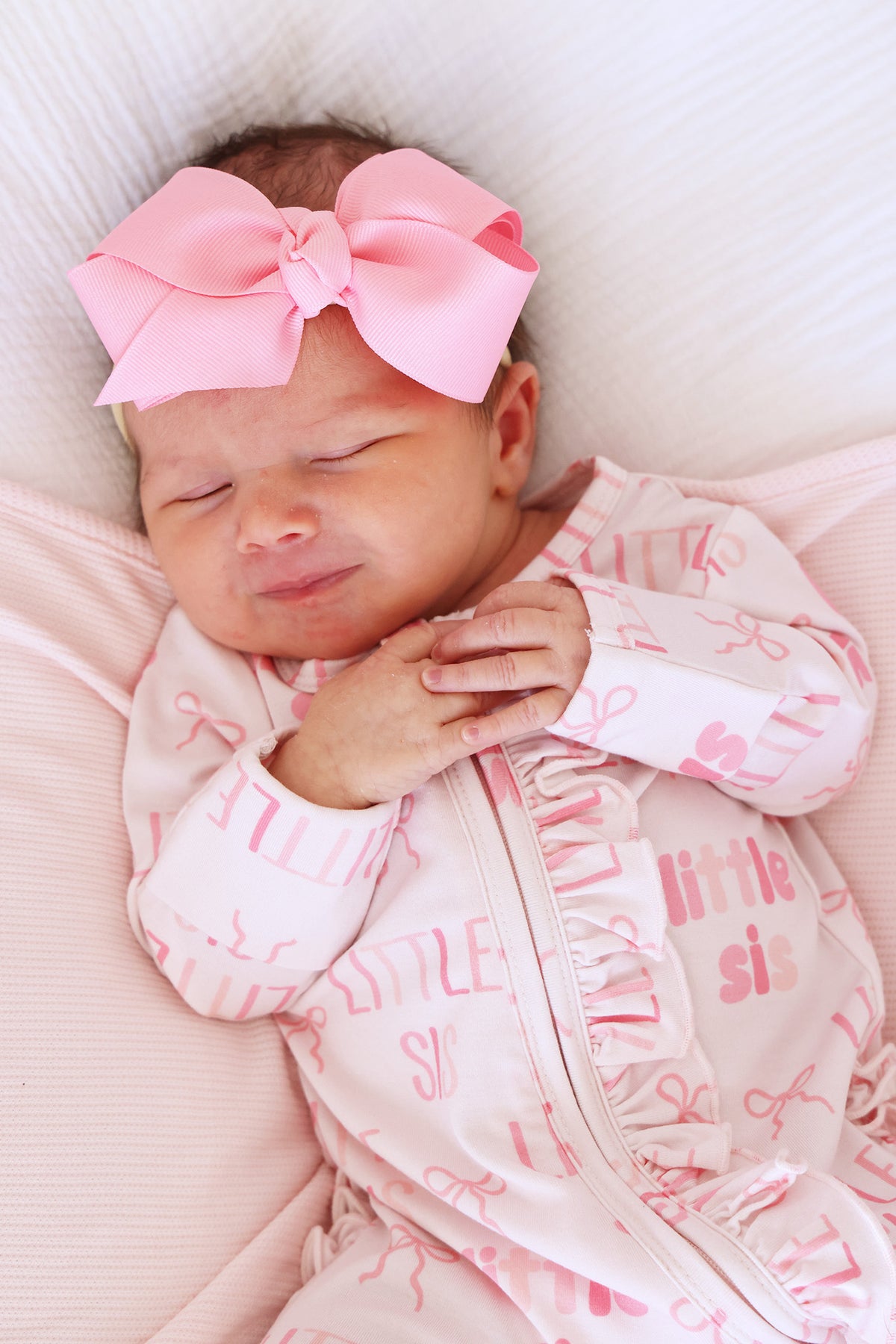 Add the finishing touch to her party look with our Candy Ribbon Bow Headband! Designed in a soft pink to match perfectly with our Party Time print, this headband features a delicate ribbon bow that sits comfortably on a stretchy band made just for newborns. Gentle on your baby’s skin and easy to wear, it’s the perfect accessory for birthdays, photos, or everyday outfits that need a little extra sweetness!