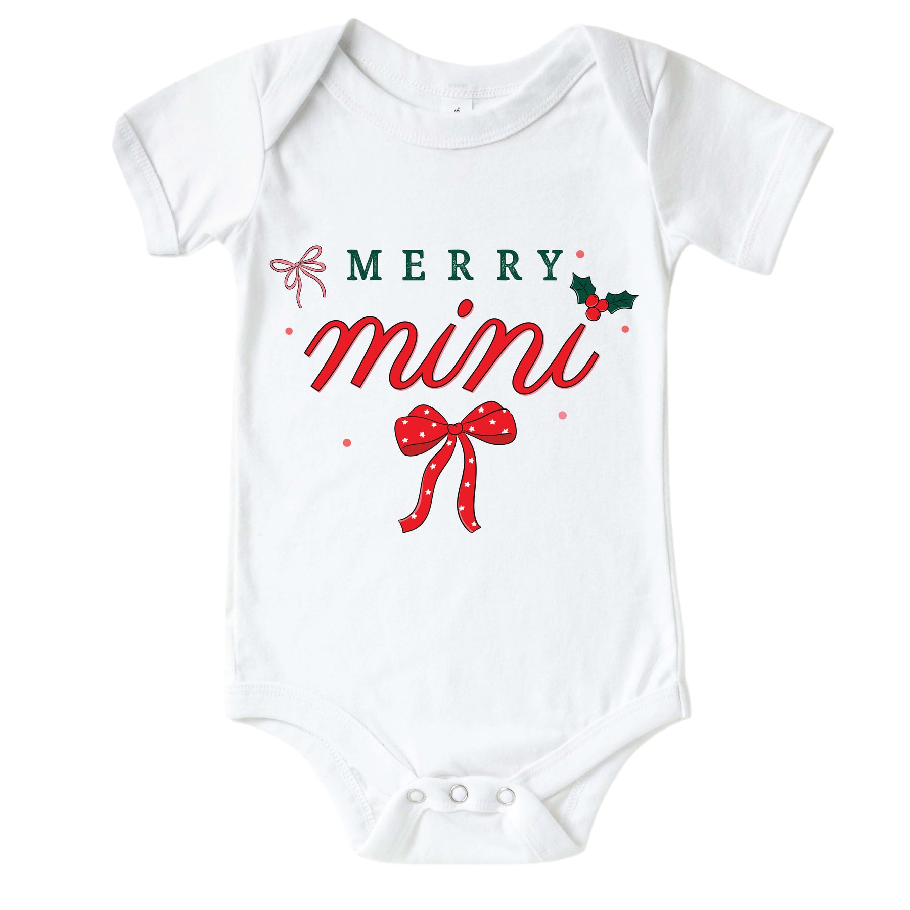 Bring extra holiday cheer to your little one’s wardrobe with our Merry Mini Graphic Tees and Bodysuits! Designed in crisp white with playful lettering, holly details, and the sweetest red bow, these tops are the perfect mix of merry and modern. Crafted from soft, breathable cotton, the t-shirts and bodysuits keep kids comfy through every Christmas cookie, carol, and cuddle. Available in sizes for toddlers and babies, they’re perfect for coordinating sibling looks or dressing your tiniest holiday helper in festive style. Because when it comes to Christmas cuteness, nothing says it better than a Merry Mini!
