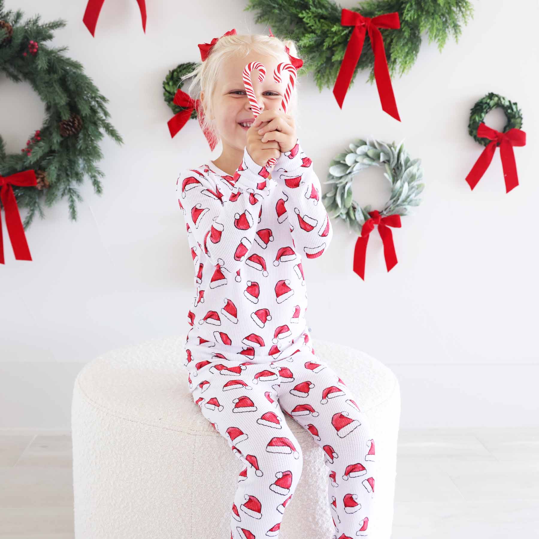 Made for merry mornings and holiday nights, our Christmas Bamboo Waffle Two-Piece Pajama Sets are full of holiday spirit! Gingerbread cookies, candy canes, bows and more pop against soft white bamboo waffle fabric, making it perfect for Christmas morning photos, baking days, and cozy evenings by the fire. The buttery-soft, breathable fabric keeps kids comfortable from sunrise to bedtime, while the snug fit allows plenty of room for festive fun. These bamboo waffle kids pajama sets are a sweet holiday staple they’ll want to wear all season long!