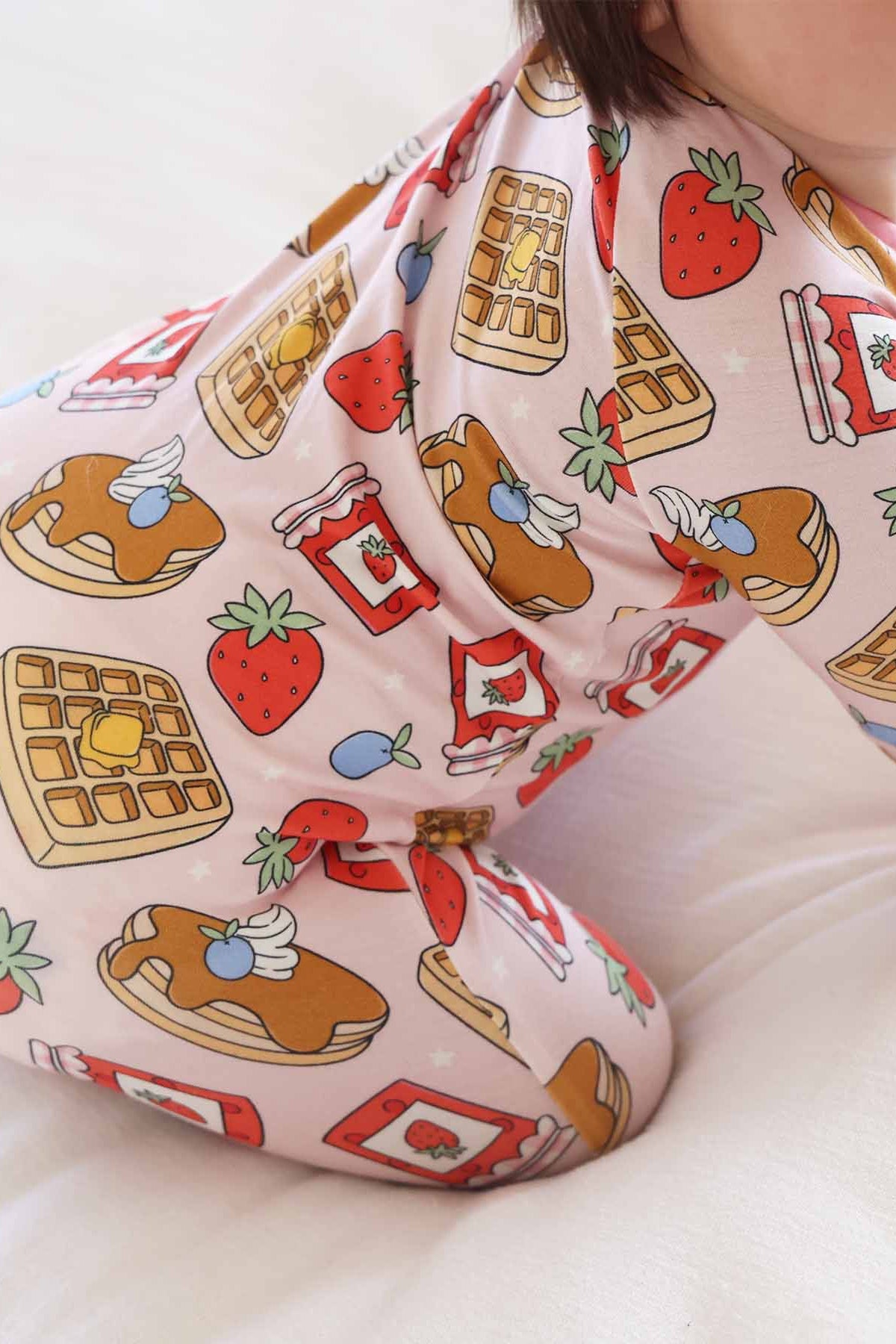 Stack up the snuggles with the Sweet Stacks Pink Convertible Zip Romper! Sprinkled with fluffy pancakes, golden waffles and jars of jam, this buttery-soft bamboo viscose one-piece is as sweet as her favorite breakfast treat. The convertible design lets you switch from footless to footed in seconds, making it perfect for playtime wiggles, cozy stroller rides, and dreamy naps. With the cutest print and unbelievable softness, this romper is a recipe for cuteness, morning and night!