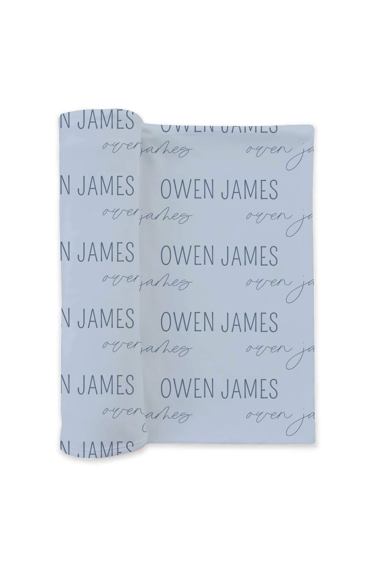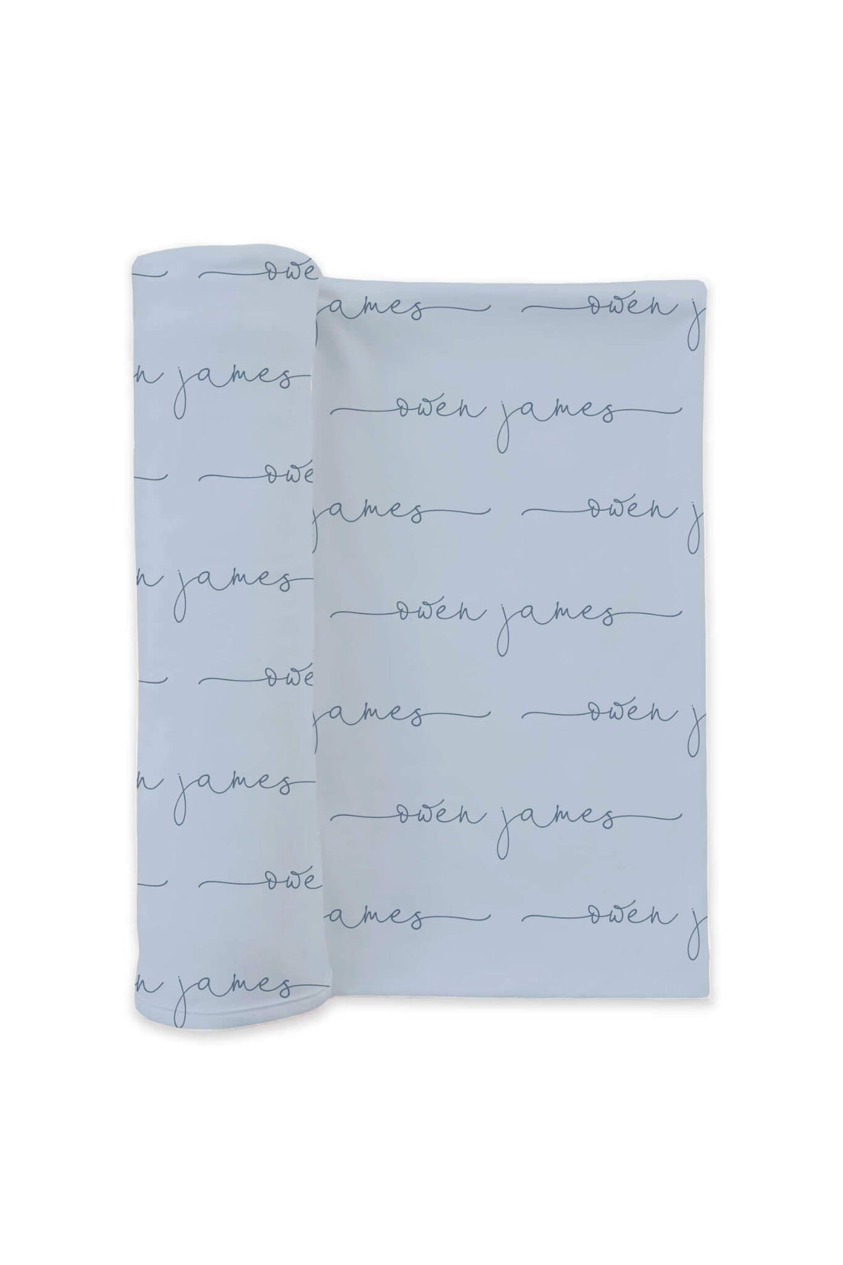 Personalized Baby Blue Baby Name Swaddle Blanket