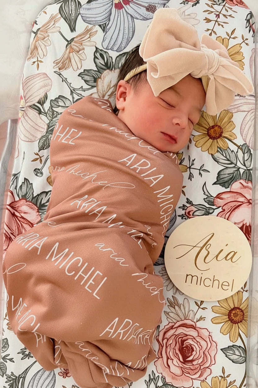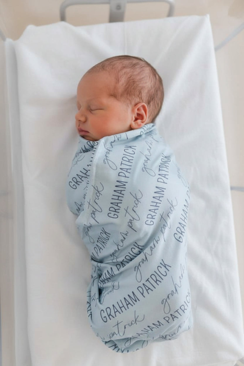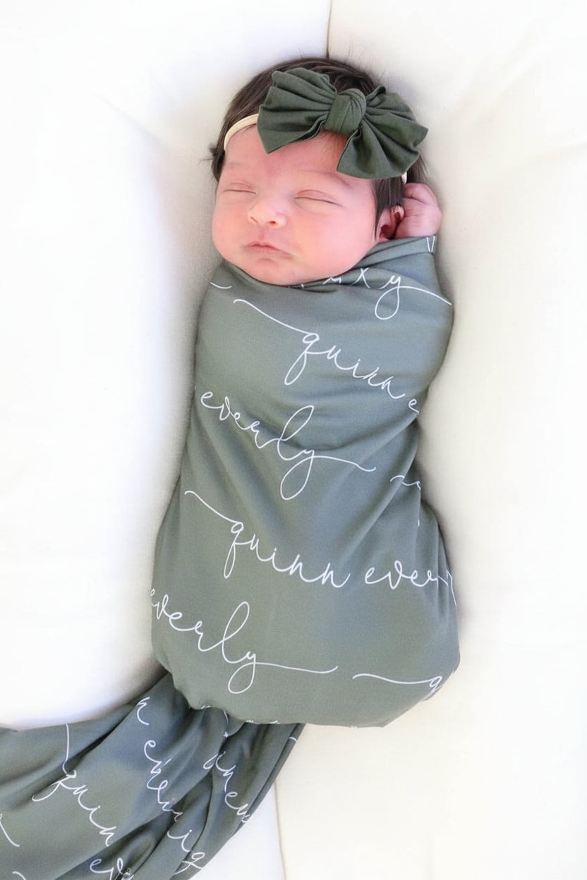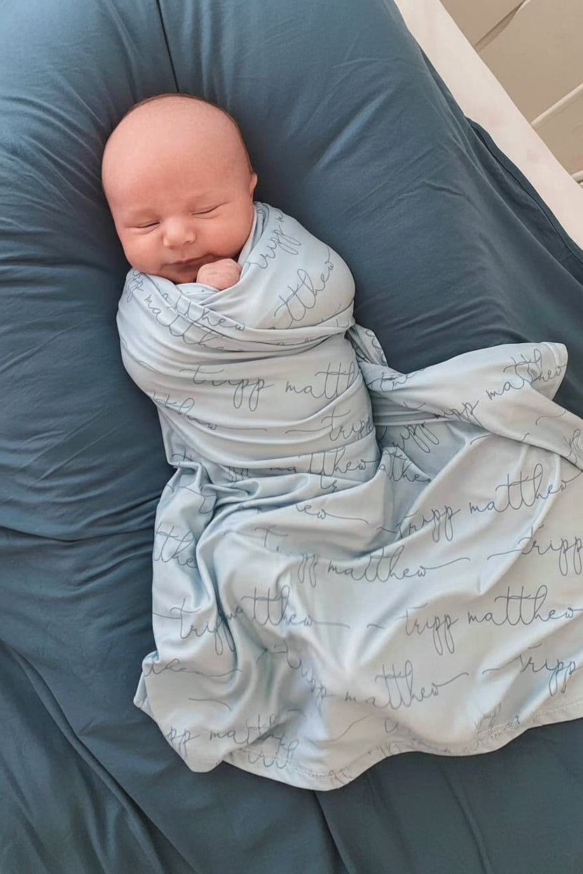 Wrap your precious newborn in the coziest, cutest way possible with our personalized swaddle blankets! With a rainbow of colors to choose from to match every baby's style, these baby swaddles make the greatest baby shower gift and keepsake that moms will tuck away as their babies grow. These buttery soft, stretchy and HUGE swaddles make bundling up your fussy baby easier than ever before, helping them sleep longer and feel secure like they never left your tummy. The personalized touch also proudly announces your baby's name to the world, and is the ideal accessory for photoshoots and everyday snuggles.