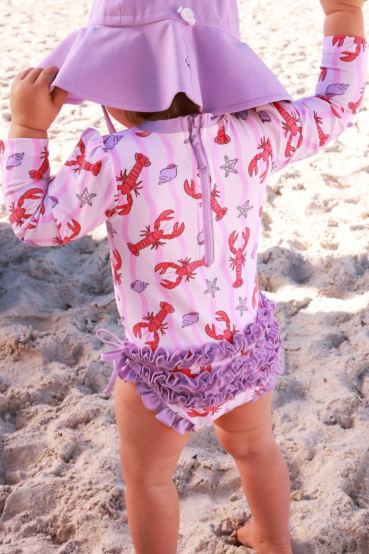Designed to pair beautifully with our Pinch Me swim, the Seashell Purple Swim Hat adds the sweetest pop of color to every sunny-day look. Made from lightweight, swim-ready fabric with built-in sun coverage, this hat is perfect for long beach afternoons, poolside playdates, and sandy seaside strolls. The comfortable fit stays secure while she runs, splashes, and explores, offering shade without slowing her down. Whether she’s matching her siblings or topping off her own seaside style, this swim hat is the kind of accessory that makes summer outfits feel complete!
